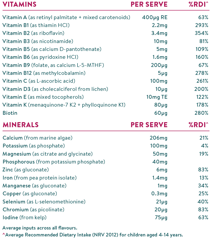 Good nutrition throughout childhood is important to support normal physical and mental development. The period between the ages of 4-14 is characterised by rapid growth, and cognitive and emotional development. Make sure they're built on good stuff!